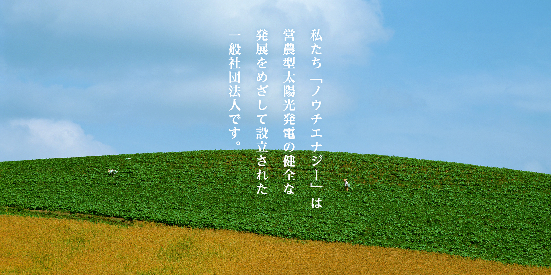 ノウチ(農業)とエナジー(太陽光発電)の新たなカタチである「営農型太陽光発電」の健全な発展を推進する団体です。「営農型太陽光発電」の普及によって農業の抱える諸問題を解決し、脱炭素化社会の実現に貢献します。